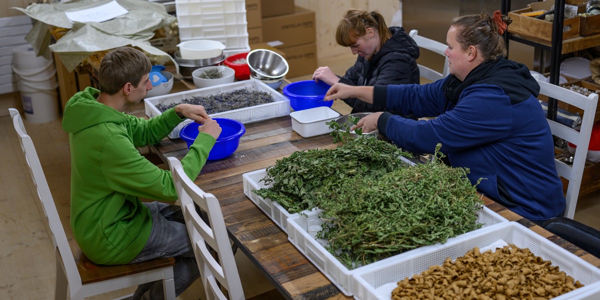 Die Beschäftigungsmöglichkeiten sind gross. Mitgearbeitet werden kann in folgenden spezifischen Gebieten: Gärtnerei und Floristik, Hauswartung, Hauswirtschaft, Küche, Milchverarbeitung, Landwirtschaft, Umgebungspflege, Verpackerei, Produktion Teigwaren und Holzprodukte und kreative Projekte (Beschriftungen etc.). Gearbeitet wird in Gruppen. Die Betreuung ist rundum gewährleistet - auch in den Pausen und beim Mittagessen. Unser Fachpersonal leitet an und begleitet, fördert und betreut persönlich.